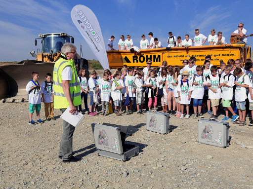 Am Kieswerk Röhm in Äpfingen wurde den Schulklassen der Grundschule Maselheim und Äpfingen, der Grund-, Haupt- & Werkrealschule Mietingen und der Friedrich Adler Realschule Laupheim 3 neue GeoKoffer feierlich übergeben.