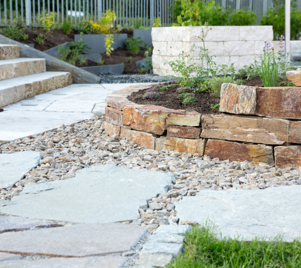 Auf unserem Kooperationsgarten finden Sie einige unsere Natursteinprodukte sowie eine professionelle Beratung.