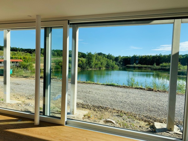 "Auf breites Interesse stießen die Führungen in der Ferienhausanlage durch Architekt Maximilian Weigl. Der Blick aus der großzügig angelegten Fensterfront faszinierte die Besucher." (Pressebericht Franz Liesch; schwäbische Zeitung)